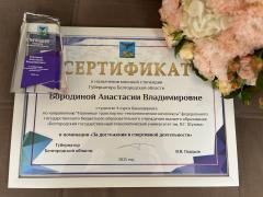 За высокие спортивные результаты по виду спорта «кикбоксинг» наградили мастера спорта России, действующего спортсмена, а также тренера-преподавателя СШОР № 1 Белгородской области Анастасию Бородину!