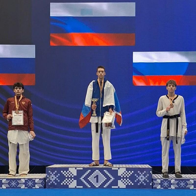 А сегодня Антон в составе сборной команды России по командному тхэквондо завоевал серебряную награду международного турнира.