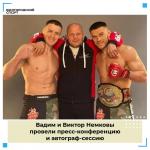 26 ноября 2022 года на Белгород-Арене для спортсменов провели пресс-конференцию и автограф сессию братья Немковы.Вадим победил в турнире Bellator 288 в Чикаго, в очередной раз защитив титул чемпиона в полутяжелом весе.Виктор выиграл золото...